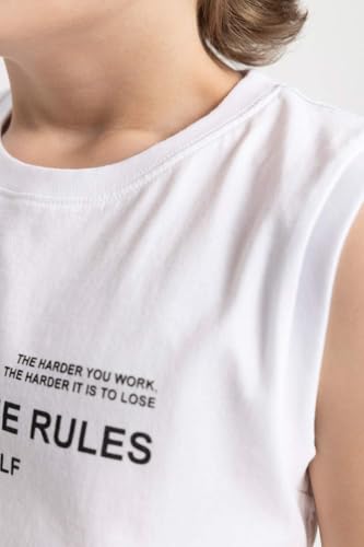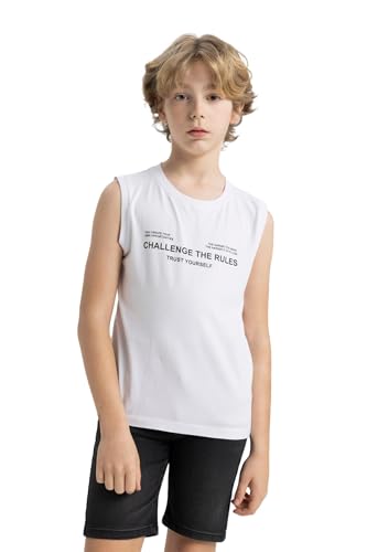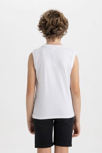 DeFacto - تيشرت رياضي منسوج بقصة ضيقة سليم عادية ورقبة دائرية بدون أكمام للرجال من ديفاكتو، أبيض، B6161A8