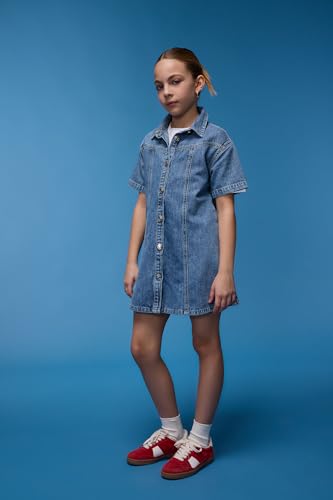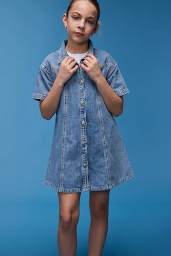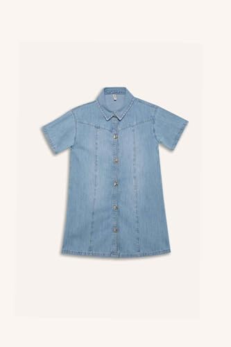 DeFacto - DeFacto Girl Casual Dress Short Sleeve Denim Dress,Light Blue 5/6 Y