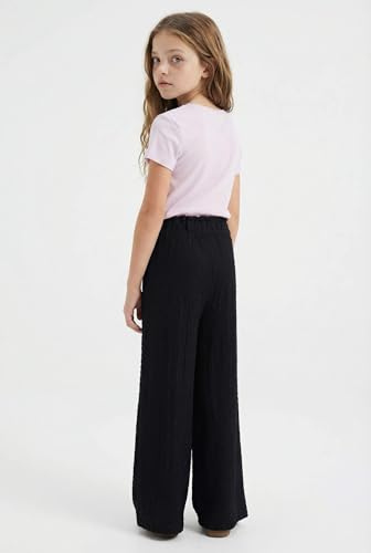 DeFacto - ديفاكتو طقم ملابس كاجوال باكمام قصيرة للبنات - طقم محبوك بارجل واسعة، لون بينك، لعمر 5/6 سنوات