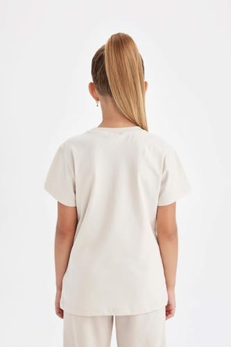 DeFacto - تيشرت منسوج بقصة عادية ورقبة دائرية ضيقة وأكمام طويلة للبنات موديل C8460A8 من ديفاكتو