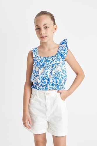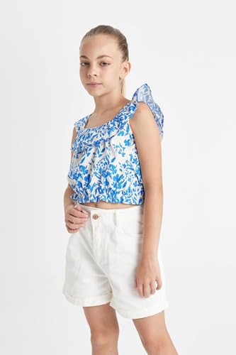 DeFacto - DeFacto Girls Blouse StrappedWoven Top Short Sleeve Blouse C1082A8 Short Sleeve Blouse