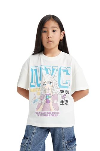 DeFacto - DeFacto Girls Knitted Oversize Fit Crew Neck Short Sleeve Short Sleeve Body B5170A8 Short Sleeve Body