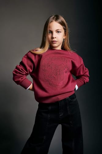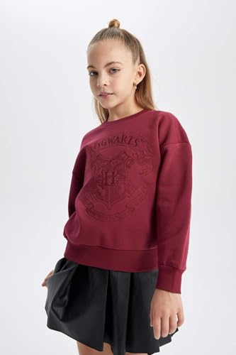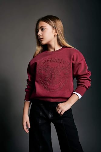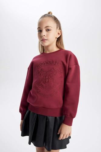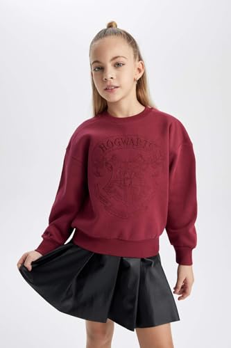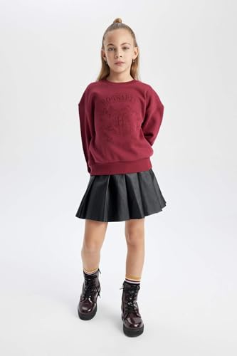 DeFacto - سويت شيرت منسوج بقصة عادية ورقبة دائرية ضيقة وأكمام طويلة للبنات B0423A8 من ديفاكتو