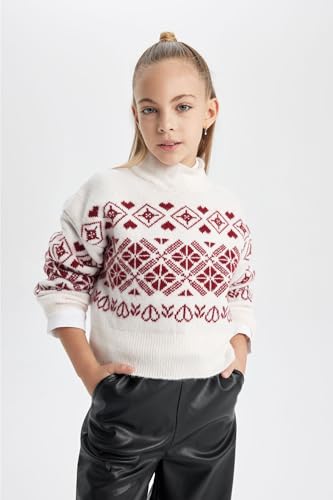 DeFacto - DeFacto girls Regular Fit Crew Neck Long Sleeve Tricot B2666A8 Pullover Sweater