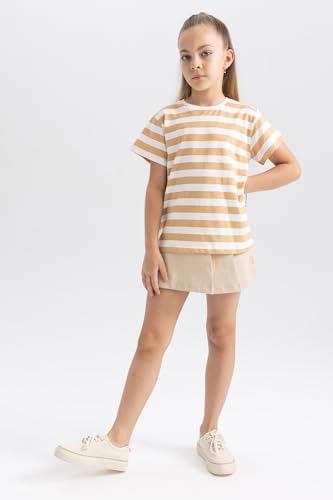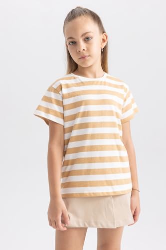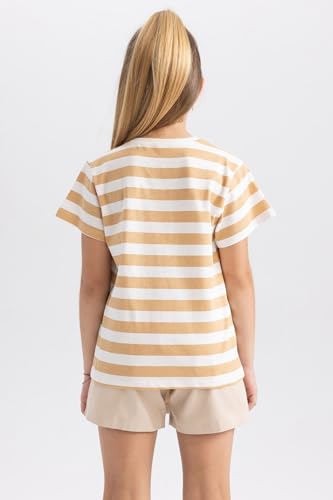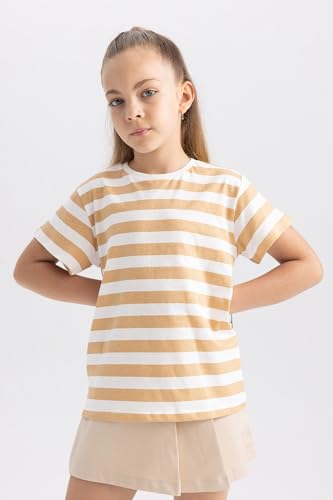 DeFacto - تيشرت بكم قصير وقصة عادية للبنات من ديفاكتو، B0444A8