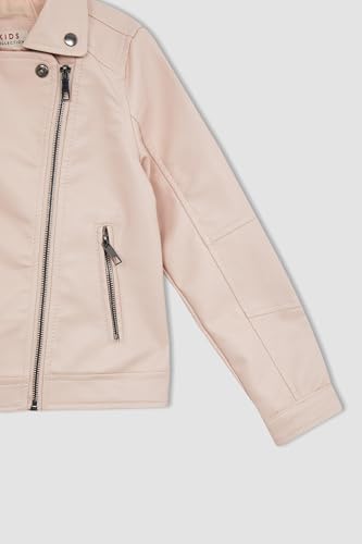 DeFacto - معطف بدون غطاء للرأس وبأكمام طويلة وقصة عادية للبنات من الجلد الصناعي من ديفاكتو، ملابس خارجية مبطنة ببدائل الزغب، S5859A6