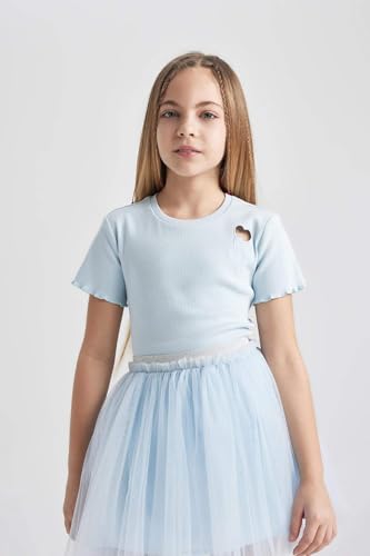 DeFacto - DeFacto Girls Slim Fit Short Sleeve B6925A8 Crew Neck Short Sleeve Body