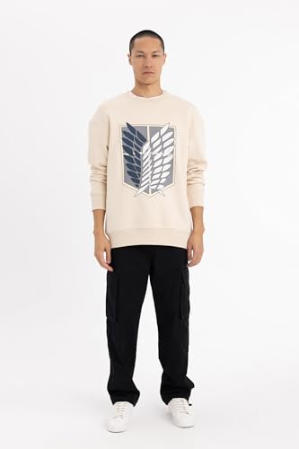 DeFacto - سويت شيرت بقصة فضفاضة ورقبة دائرية ضيقة وأكمام طويلة للرجال من ديفاكتو، B1637AX