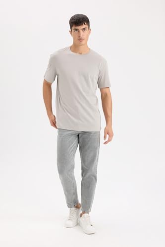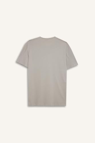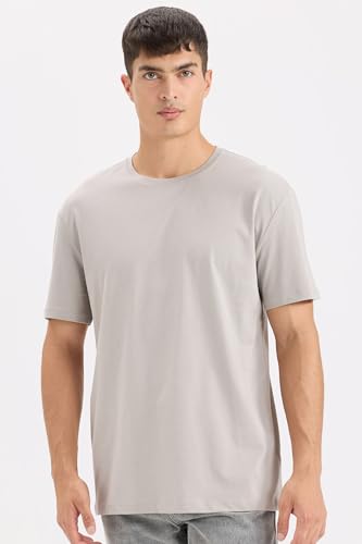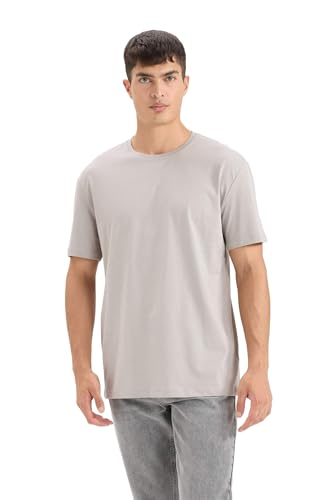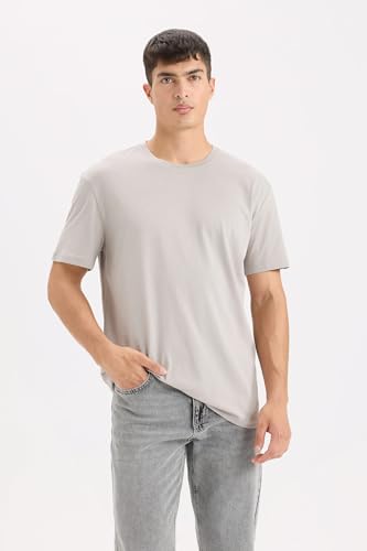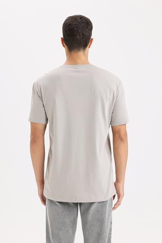 DeFacto - تيشرت منسوج بقصة عادية ورقبة دائرية ضيقة وأكمام قصيرة للرجال E1091AX من ديفاكتو، رمادي، سمول