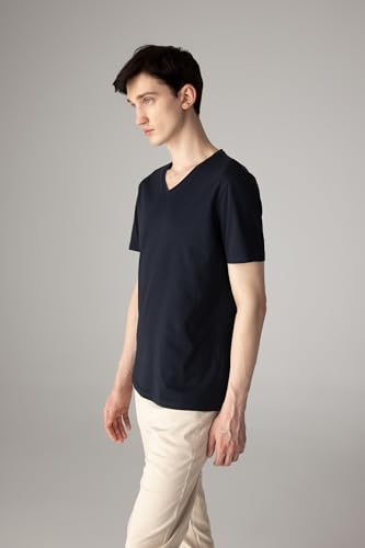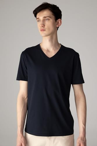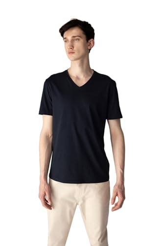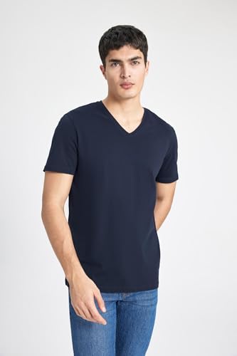 DeFacto - DeFacto Man Knitted Slim Fit Crew Neck Short Sleeve T-Shirt M7668AZ,Navy L
