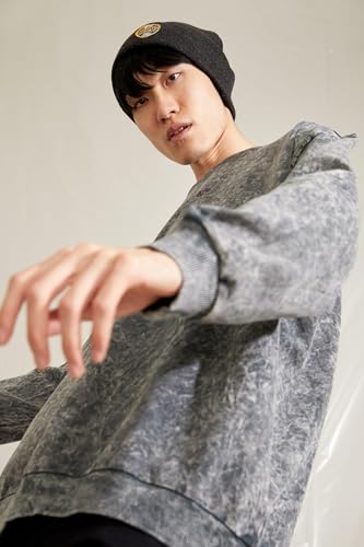 DeFacto - ديفاكتو سويت شيرت منسوج بقصة واسعة ورقبة دائرية ضيقة واكمام طويلة للرجال بلون رصاصي مقاس M
