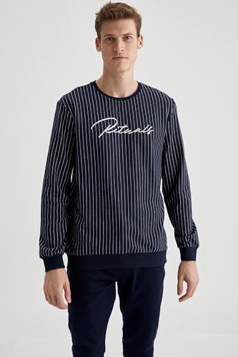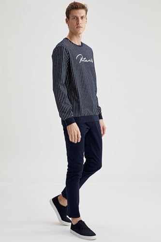 DeFacto - DeFacto Man Regular Fit Crew Neck Long Sleeve Navy Knitted Sweat Shirt, Navy XL