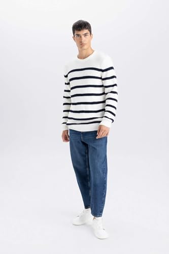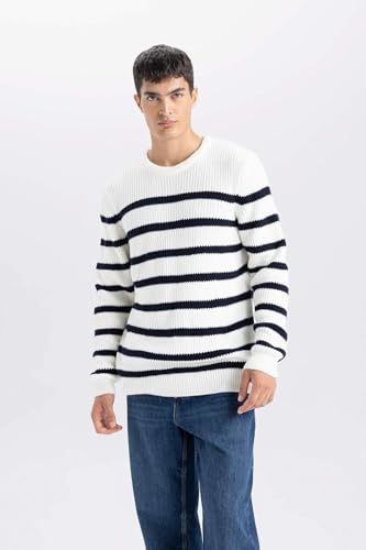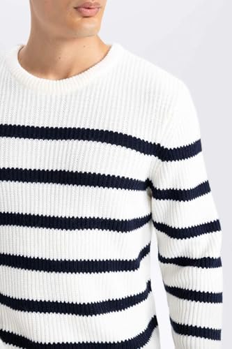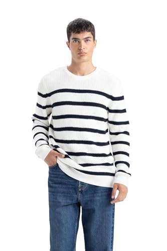 DeFacto - بلوفر تريكو بقصة عادية ورقبة دائرية وأكمام طويلة للرجال B0546AX من ديفاكتو