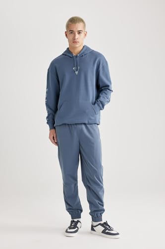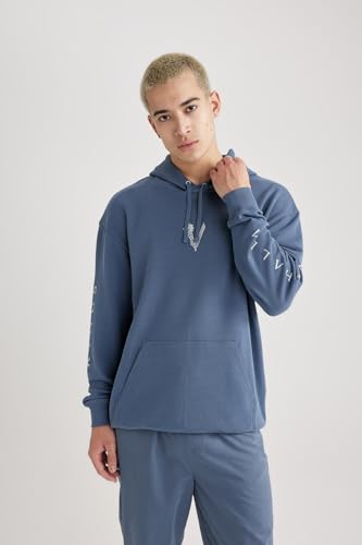 DeFacto - سويت شيرت بغطاء للرأس بقصة مربعة وأكمام طويلة للرجال من ديفاكتو، موديل B5534AX