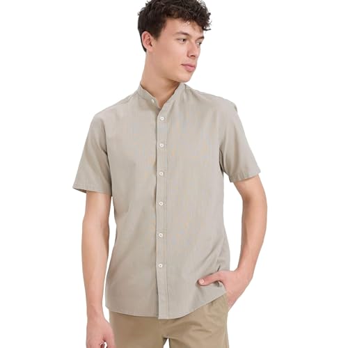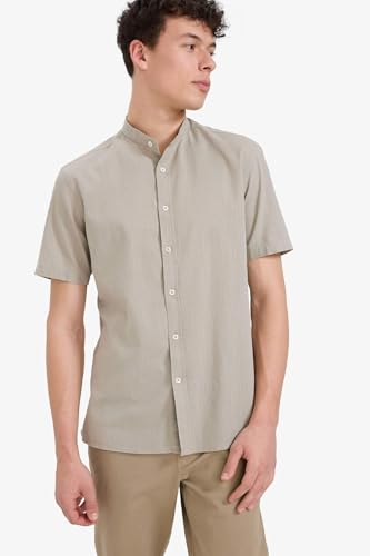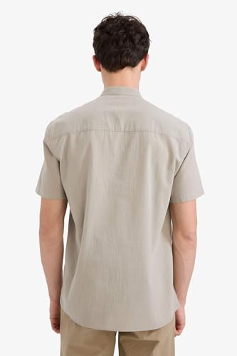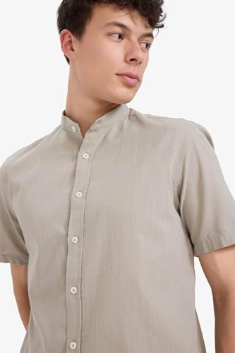 DeFacto - DeFacto Mens Casual Woven Top Regular Fit Stand- Up Collar Short Sleeve Short Sleeve Shirt E1731AX Modern