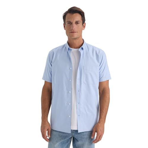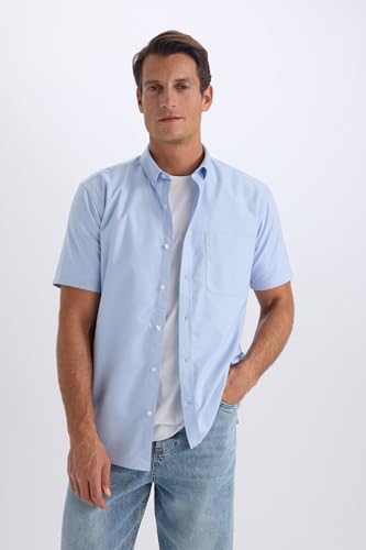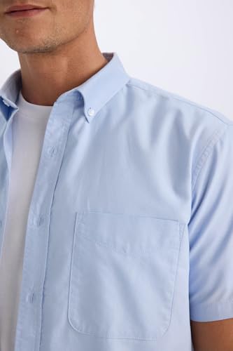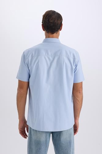 DeFacto - DeFacto Mens Regular Fit Polo Neck Short Sleeve Casual Woven Top Short Sleeve Shirt D7419AX Short Sleeve Shirt
