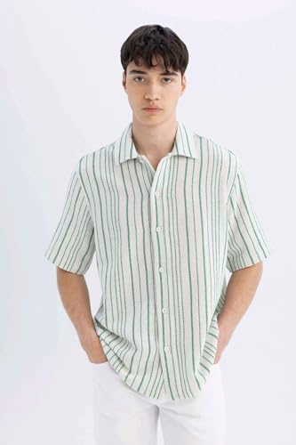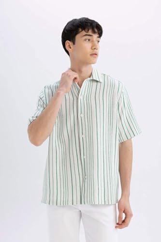 DeFacto - DeFacto Mens Relax Fit Regular Short SleeveWoven Top Short Sleeve Shirt D2059AX Short Sleeve Shirt