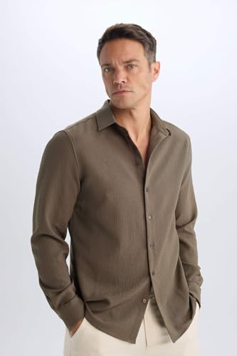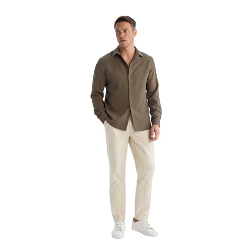 DeFacto - DeFacto Mens Smart Casual Modern Fit Polo Neck Long Sleeve Woven Top Long Sleeve Shirt Fashion > Men > Clothing > Tops & Shirts > Button Down Shirts (pack of 1)