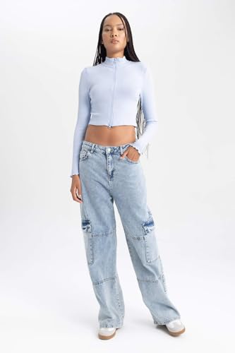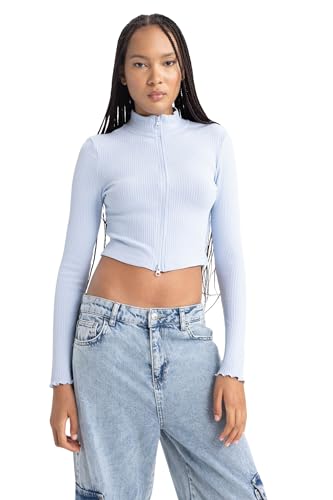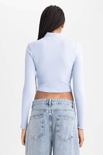 DeFacto - DeFacto Woman Fitted Mock Neck Long Sleeve Lt.Blue Knitted Cardigan, LightBlue XS
