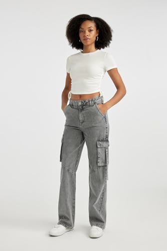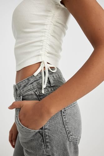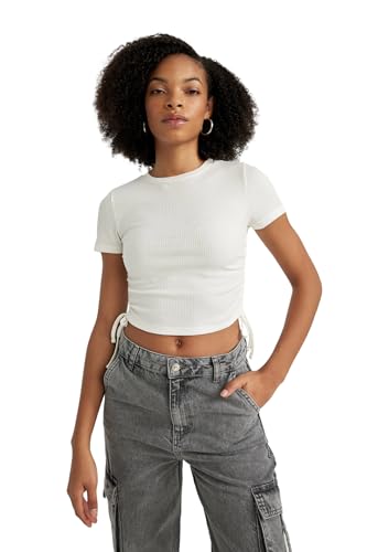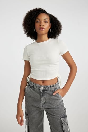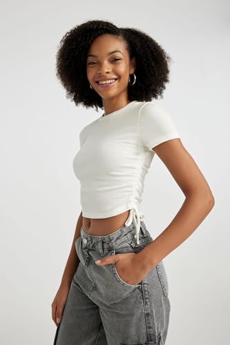 DeFacto - DeFacto Woman Knitted Fitted Crew Neck Short Sleeve Short Sleeve T-Shirt T9632AZ, Off White XS