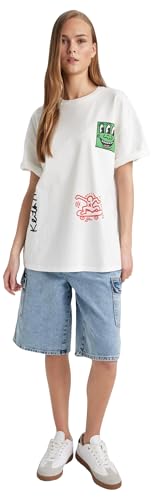 DeFacto - تي شيرت بأكمام قصيرة ورقبة دائرية ضيقة وقصة كبيرة حريمي C3566AX من ديفاكتو