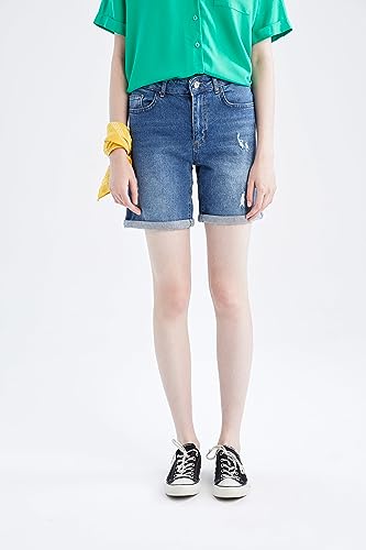 DeFacto - DeFacto Woman Pixxie Mid Blue Denim Short, Mid Blue 36