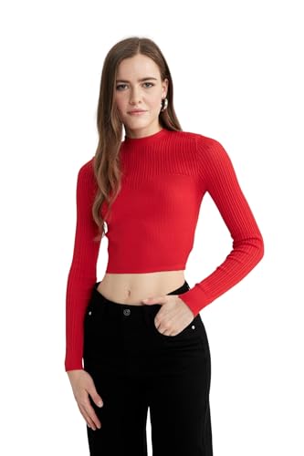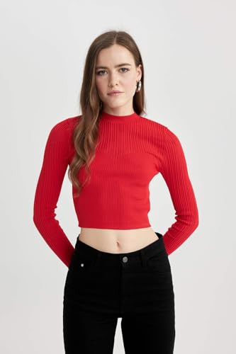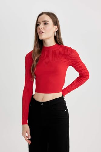 DeFacto - DeFacto Woman Regular Fit Crew Neck Long Sleeve Tricot Pullover B2491AX,Red XL