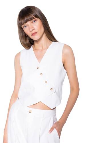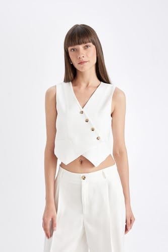 DeFacto - DeFacto Woman Smart Casual Asymmetric V Neck Sleeveless Blazer & Vest Vest,Ecru 36
