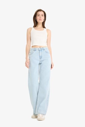 DeFacto - DeFacto Woman Special Collection Straight Wide Denim Trousers,Light Blue 36