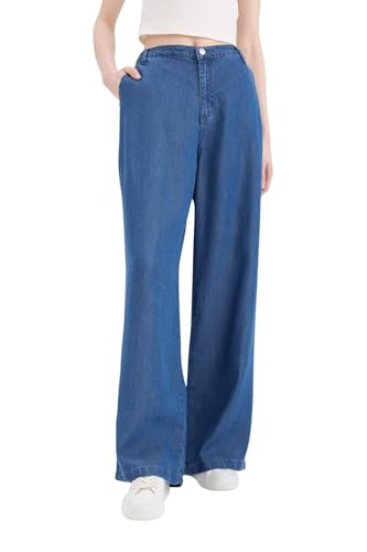 DeFacto - ديفاكتو بنطلون جينز بارجل واسعة للنساء من مجموعة خاصة بلون ازرق متوسط مقاس 36