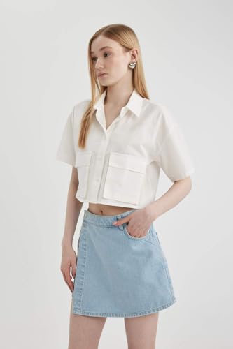 DeFacto - DeFacto Woman Woven Top Oversize Fit Shirt Neck Short Sleeve Short Sleeve Shirt C0739AX Short Sleeve Shirt
