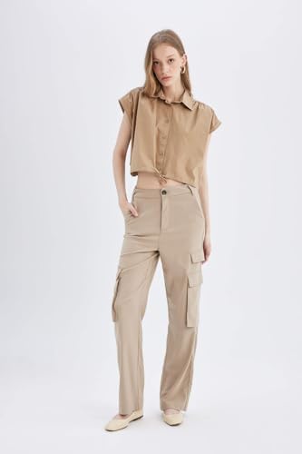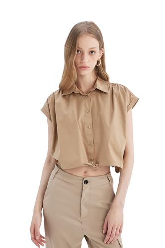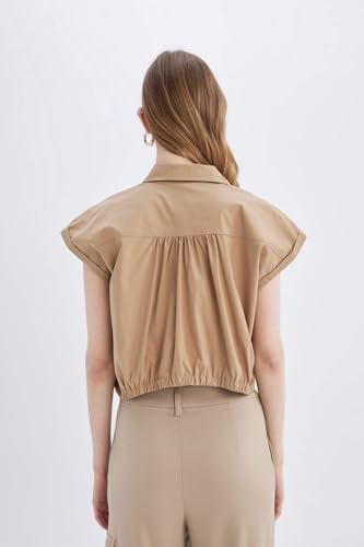 DeFacto - بلوزة قصيرة من نسيج محبوك بأكمام قصيرة وياقة قميص للنساء من ديفاكتو، موديل D1200AX