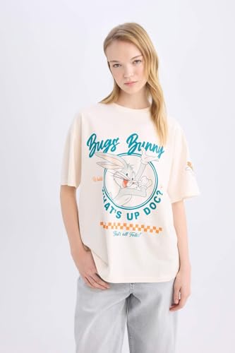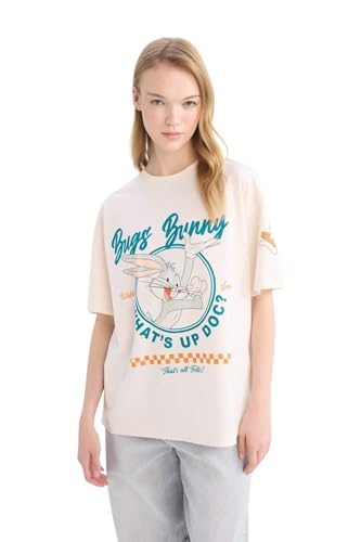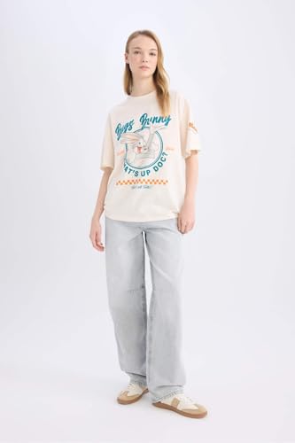DeFacto - DeFacto Womens Oversize Fit Crew Neck Coool Knitted Short Sleeve T-Shirt D9110AX Short Sleeve T-Shirt