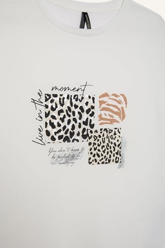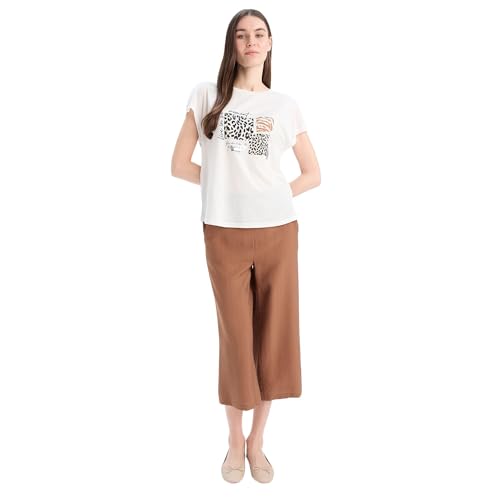 DeFacto - تيشرت E1214AX منسوج تقليدي بنصف كم وقصة عادية وفتحة رقبة دائرية للنساء من ديفاكتو
