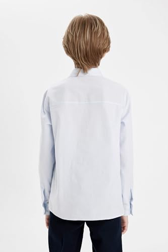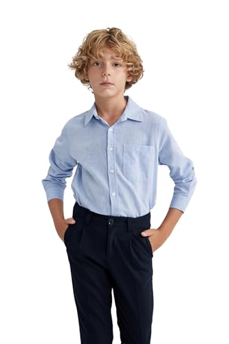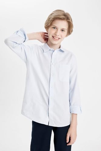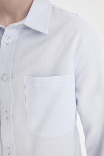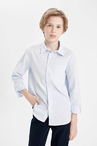 DeFacto - DeFacto Woven Top Boy Regular Fit Polo Neck Long Sleeve Long Sleeve Shirt, Lt.Blue (BE793), 11/12 Y