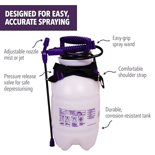 - Easy-grip spray wand for precise application and comfortable, adjustable carry strap for easy transportation