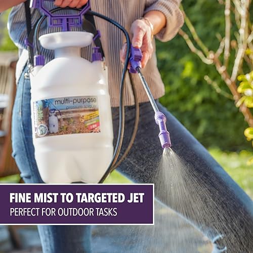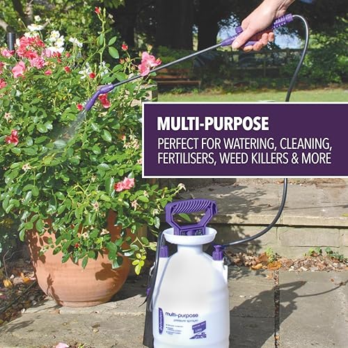 - Multi-purpose pump action garden 5 Litre pressure sprayer. Sturdy, frost proof translucent tank with gradient markings in litres and gallons for accuracy when filling