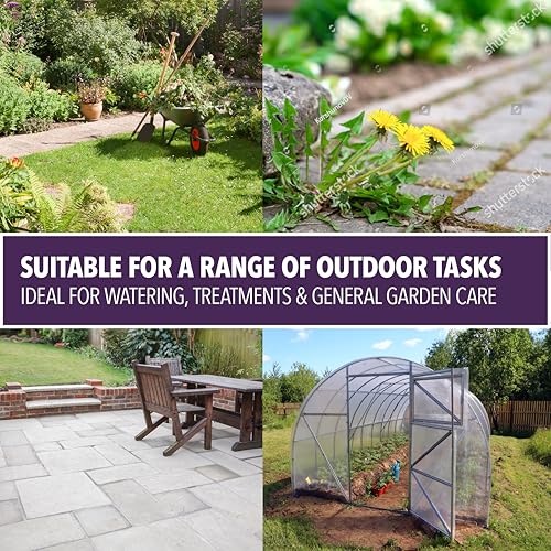 - Ideal for use in gardens, allotments, vegetable gardens and other large outdoor areas with water and soluble products such as fertilisers, weed killer, insecticides, herbicides and pesticides. Not suitable for solvents