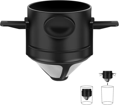 Defsedar - ماكينة تحضير القهوة بالصب، فلتر قهوة محمول من الفولاذ المقاوم للصدأ قابل لإعادة الاستخدام، صغيرة قابل للطي بدون ورق بكوب واحد، كوب منقط قهوة سهل التنظيف للسفر والتخييم من ديفسدار
