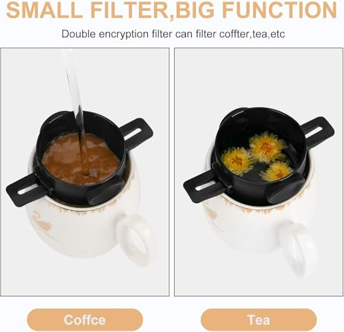 - 【سهل الاستخدام】: فلتر القهوة القابل للصب الخاص بنا يناسب العديد من أكواب القهوة. كل ما عليك فعله هو فتح الأذرع القابلة للطي ووضعها في فنجانك، إضافة مسحوق القهوة أو أوراق الشاي، صب الماء الساخن ببطء، الانتظار لبضع دقائق، ثم الاستمتاع بكوب القهوة أو الشاي.