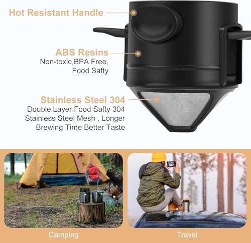 - 【تصميم محمول】: ماكينة تحضير القهوة لدينا بتصميم ذراع فريد قابل للطي وشبكة مزدوجة الطبقات عالية الجودة، سهلة الحمل ومثالية للاستخدام في المنزل، المكتب، أو أثناء التخييم والسفر. يبلغ قطر الحامل غير المطوي 11.5 سم، ومناسب لمعظم الأكواب، أكواب القهوة، النظارات، وما إلى ذلك.