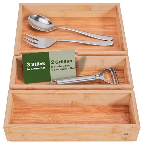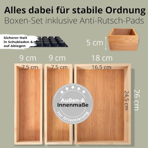DeinKaufladen.com - مجموعة من 3 صناديق تخزين من دينكاوفلادين، صندوق خشبي لتنظيم خزانة الحمام، صندوق فرز خشبي لتخزين مستحضرات التجميل، منظم خشبي لادراج الحمام، منظم خشبي
