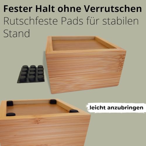 - المحتويات: صناديق من الخيزران مع قاعدة من خشب ليفي متوسط الكثافة ووسادات مانعة للانزلاق. يبلغ ارتفاع جميع الصناديق 5 سم ويمكنك اختيار المنظم المناسب لك.