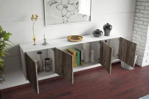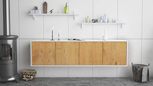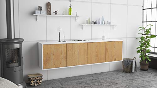 Dekati - Dekati Lowboard Anaheim hängend (180x49x35cm) Korpus Weiss matt - Front Holz-Design Eiche - Push to Open