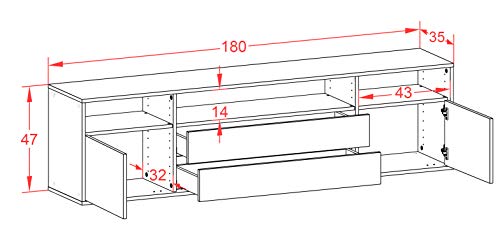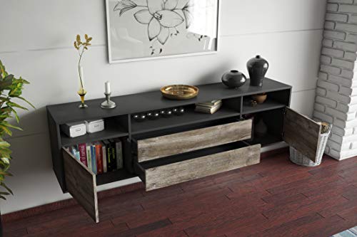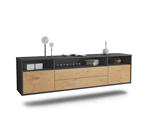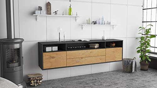 Dekati - Dekati Lowboard Laredo hängend (180x49x35cm) Korpus anthrazit matt - Front Holz-Design Eiche - Push to Open