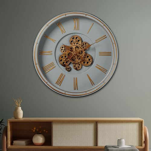 DEKOR CENTRE - Second Sight Designer Wall Clock | with Moving Gear Mechanism | White (Diameter - 20 Inches) | Silent Sweep Noiseless Technology | for Living Room/Hall/Home Decor/Hotels/Bungalows