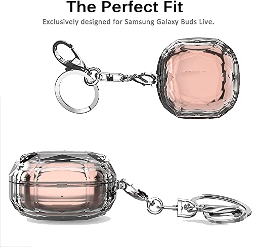 DELFINO - DELFINO Fit for Samsung Galaxy Buds Live Case Cover Hard PC with Diamond Pattern Crystal Case for Samsung Galaxy Buds Live 2020, Shock-Proof Anti-Drop Case with Keychain (Clear)