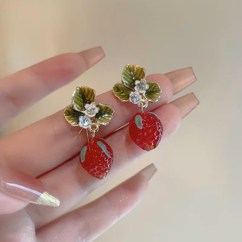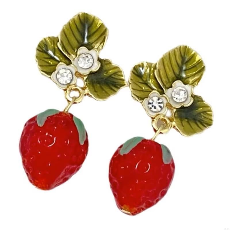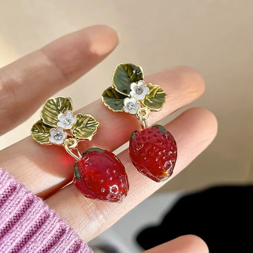 Generic - Delicate Strawberry Earrings Fashion Simulated Fruit Green Leaves Ear Studs Elegant Women Accessories for Daily Wear