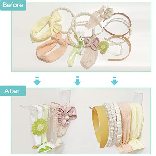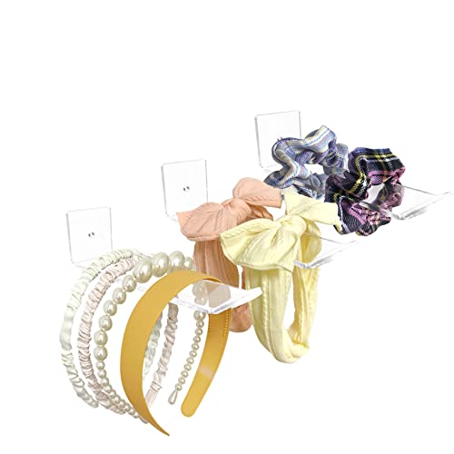 - 【PRACTICAL DESIGN】The bending at the end of the acrylic headband shelf stops hair ties, hair scrunchies, headbands from sliding off. Fine workmanship ensures smooth surface and edge, it won't damage your hair accessories.