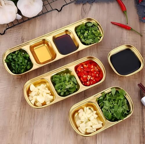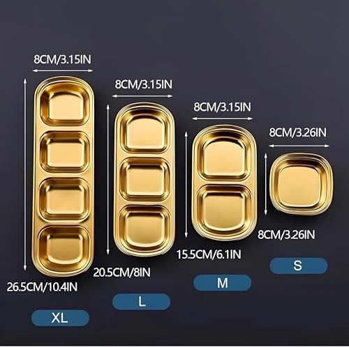 - The golden sauce dish set features high-quality stainless steel construction, ensuring durability and longevity. Each piece is lightweight yet stable, making it suitable for both hot and cold dishes, and can withstand acidic ingredients without warping, thus providing a reliable option for serving a variety of sauces and condiments.